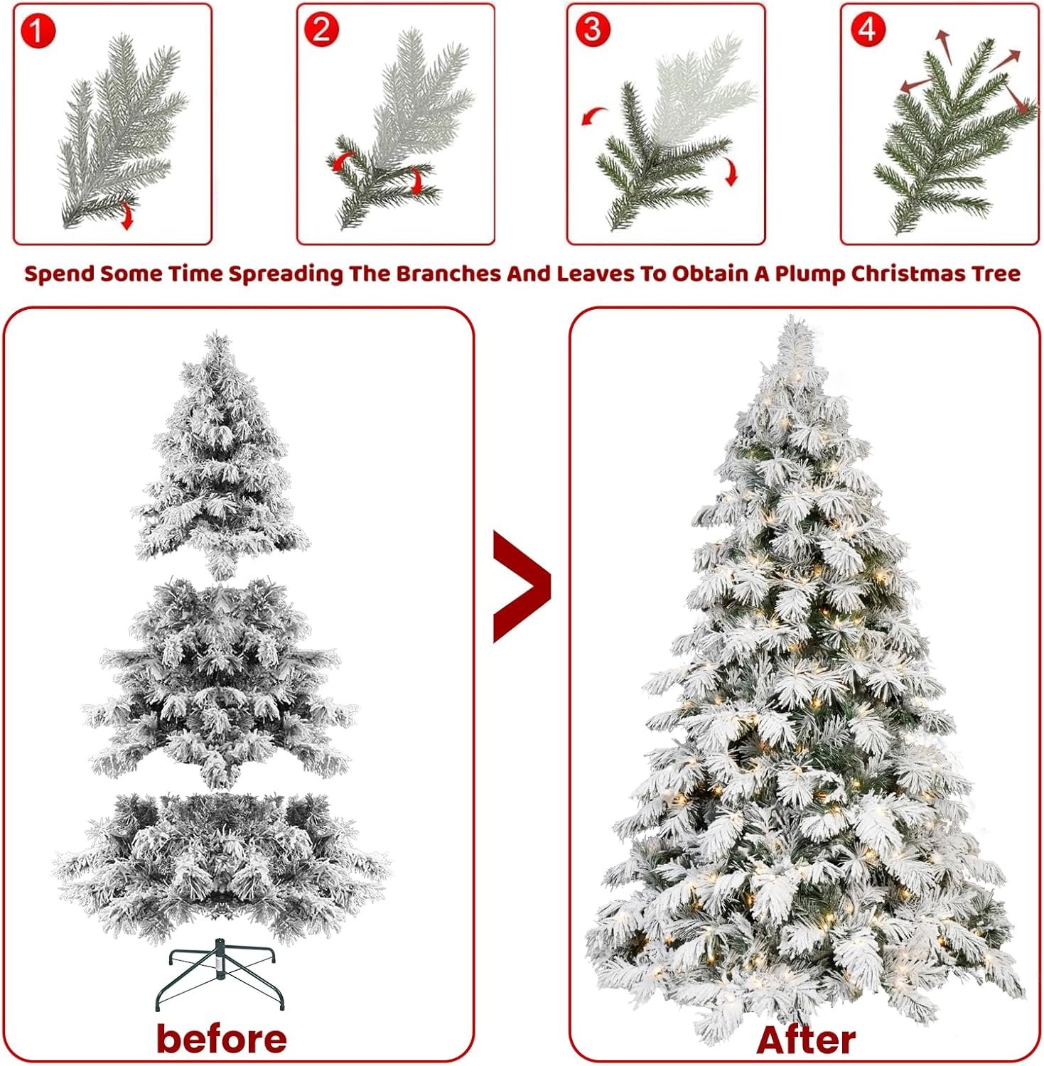 - Full snow flocking design – real and beautiful:The Yigazoch plush Christmas tree presents a lush, snow covered appearance with handmade branch tips. Thick artificial branches and realistic pine needles create a complete and natural silhouette, bringing classic Christmas charm to any indoor space.
