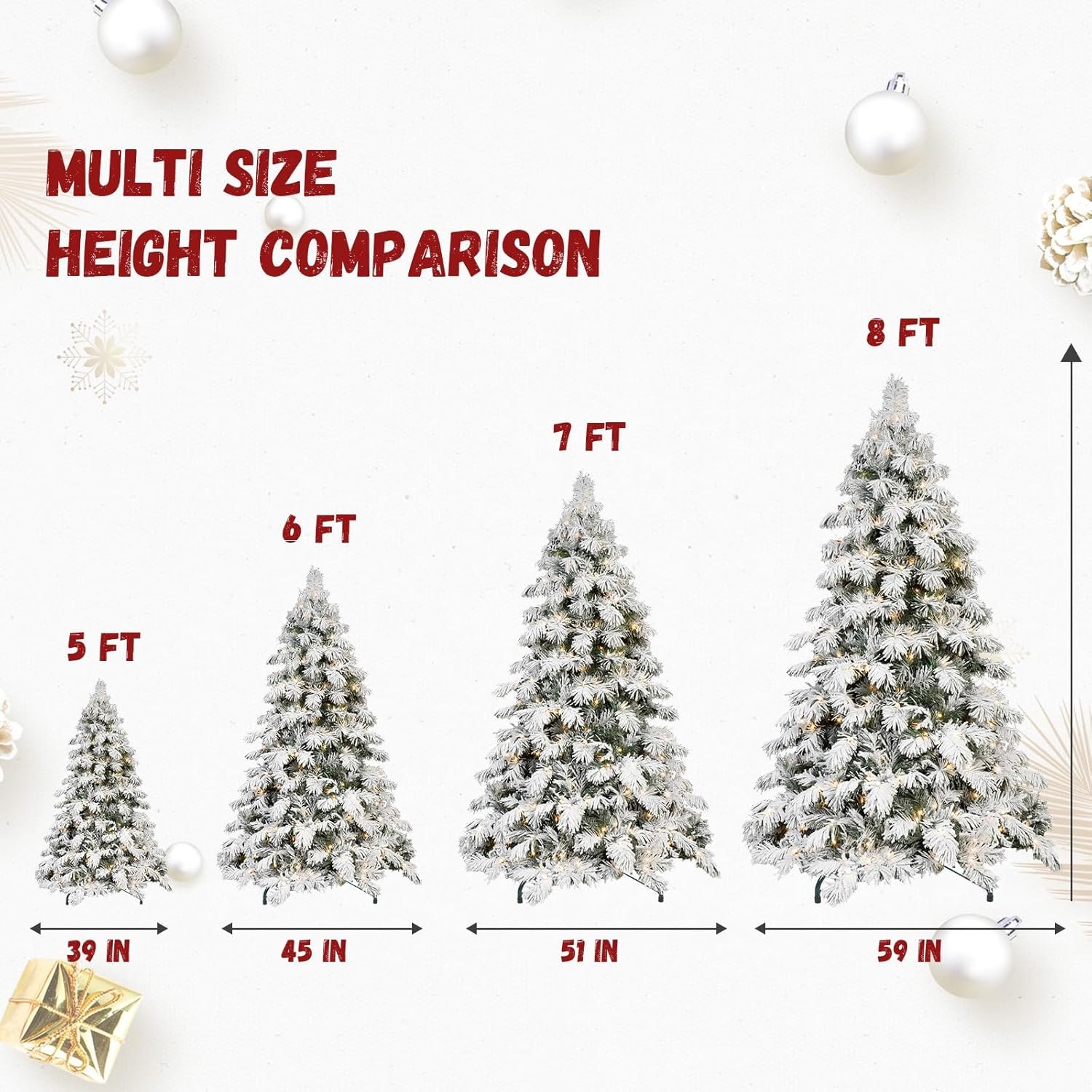 - Multi functional indoor vacation decoration – including metal brackets:This 8-feet flocked fake Xmas tree comes with a strong metal stand for secure placement in living rooms, offices, hallways, or any indoor area. The pre-lit artificial Christmas tree design is perfect for hanging ornaments and creating a warm, festive atmosphere.